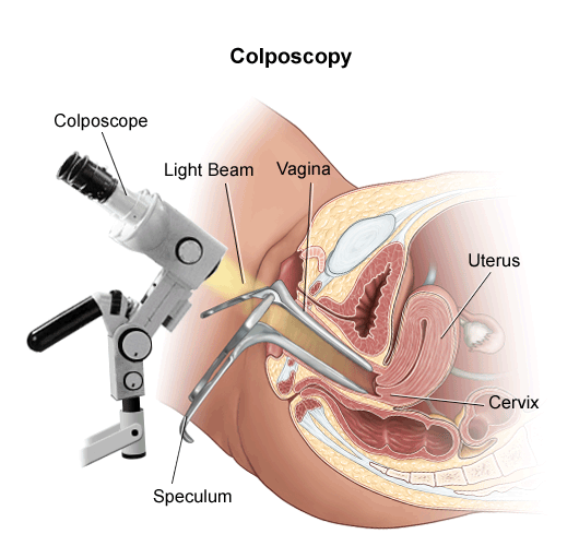 Colposcopia este o metodă simplă, neinvazivă și rapidă de diagnostic și tratament în afecțiunile ginecologice. Ea permite o examinare mai minuțioasă a vulvei, vaginului şi colului uterin. Tot în timpul colposcopiei, dacă este necesar, se poate preleva puţin ţesut (biopsie) de la nivelul colului sau din canalul endocervical pentru a fi analizat la laboratorul histologic. În acest scop medicul foloseşte un microscop special. Există colposcoape cu cameră, care permit și obținerea de imagini (foto sau video) sau conectate la un computer. În mediu, examinarea durează 15 minute.