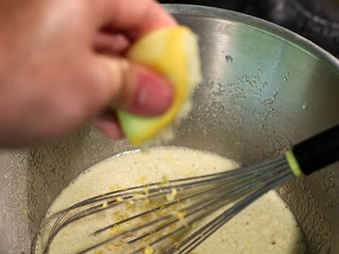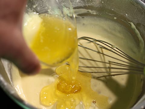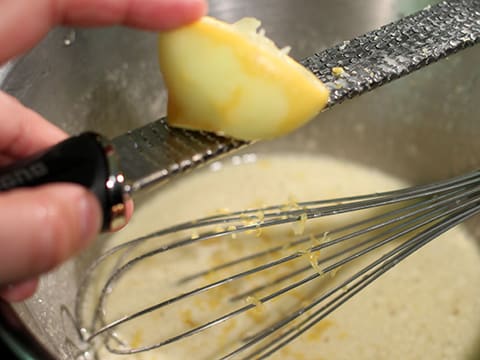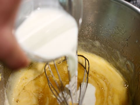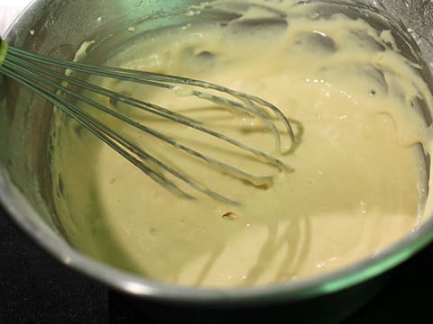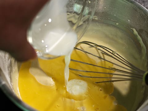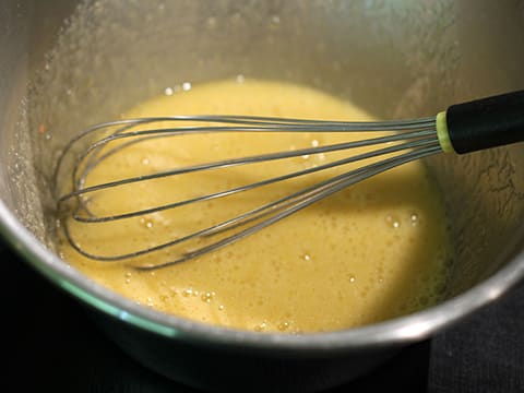 Bateți ouăle cu zahărul până obțineți o cremă fină.