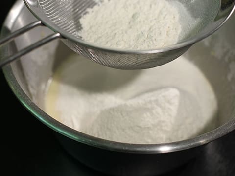 Strecurați prin sită făina și praful de copt. Mestecați bine.