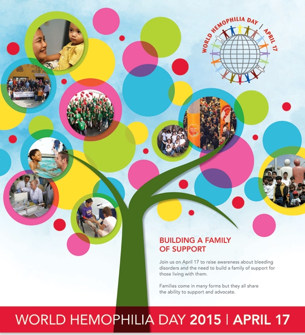 În mai multe ţări ale lumii, la 17 aprilie, este marcată Ziua Internaţională a Hemofiliei. Motto-ul de anul acesta al Federației Mondiale de Hemofilie este ”Building a family of support”.