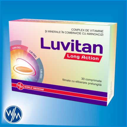 - Luvitan Long Action reprezintă un complex de vitamine, minerale şi aminoacizi, necesar pentru metabolismul normal, creşterea şi dezvoltarea organismului, protecţia împotriva bolilor şi factorilor nocivi de mediu, asigurarea funcţiilor vitale. De asemenea, creşte rezistenţa organismului la diverse maladii.